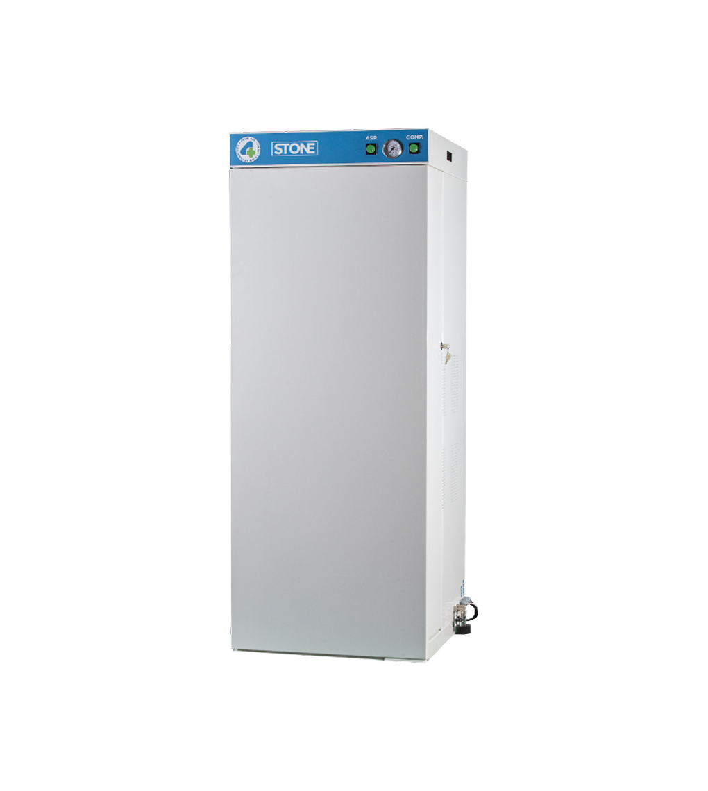 Smart Station od jednog kompresora bez isušivača s 2 plutajuća klipa i jednim polusuhim saugerom za 2 stomatološke stolice.