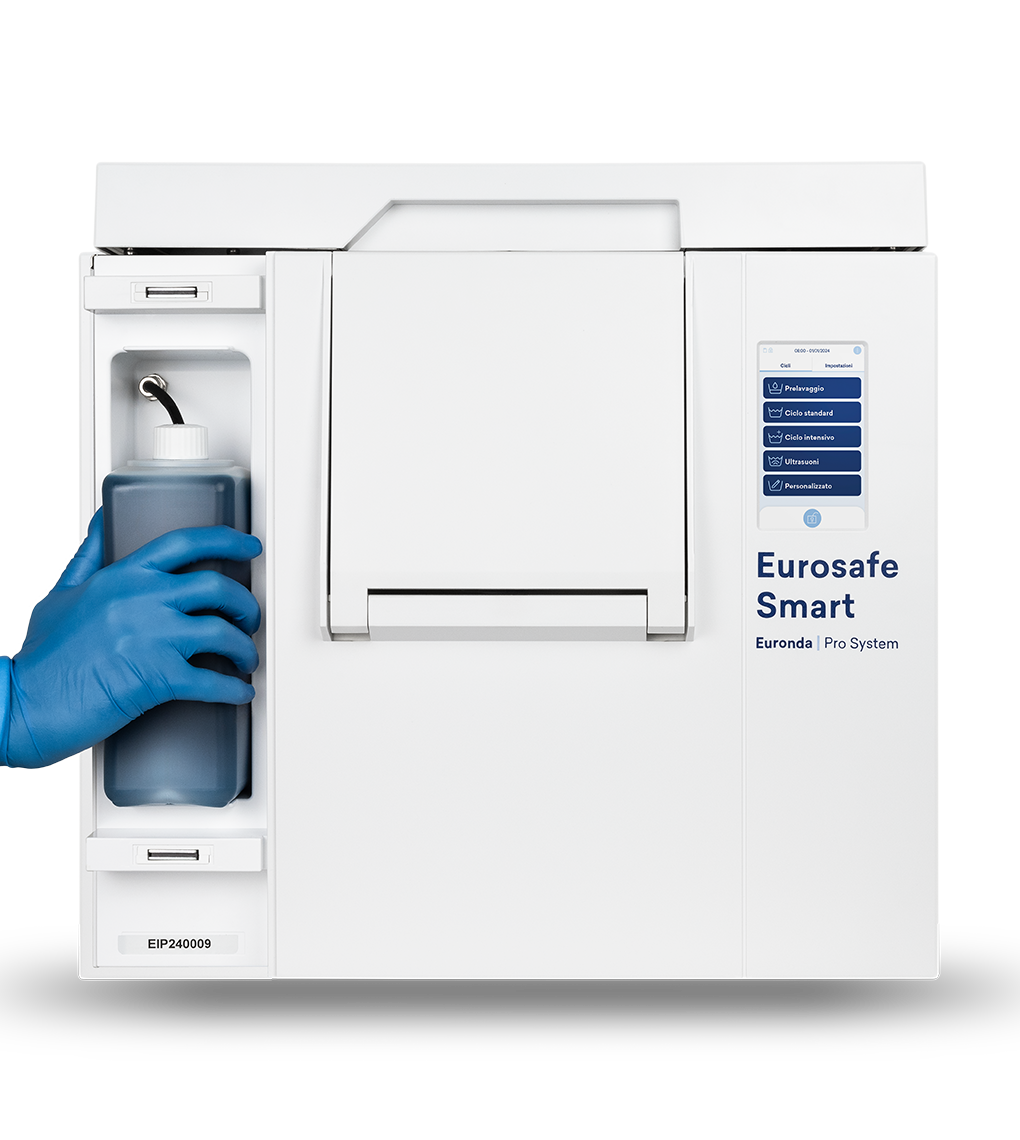Eurosafe Smart pere i suši instrumente u jednom brzom i automatiziranom procesu. U kombinaciji s dezinficijensom i deterdžentom Sanifizer Automatic, spaja učinkovitost ultrazvučnog pranja s čišćenjem i dezinfekcijom sadržaja, uz očuvanje tretiranih materijala.