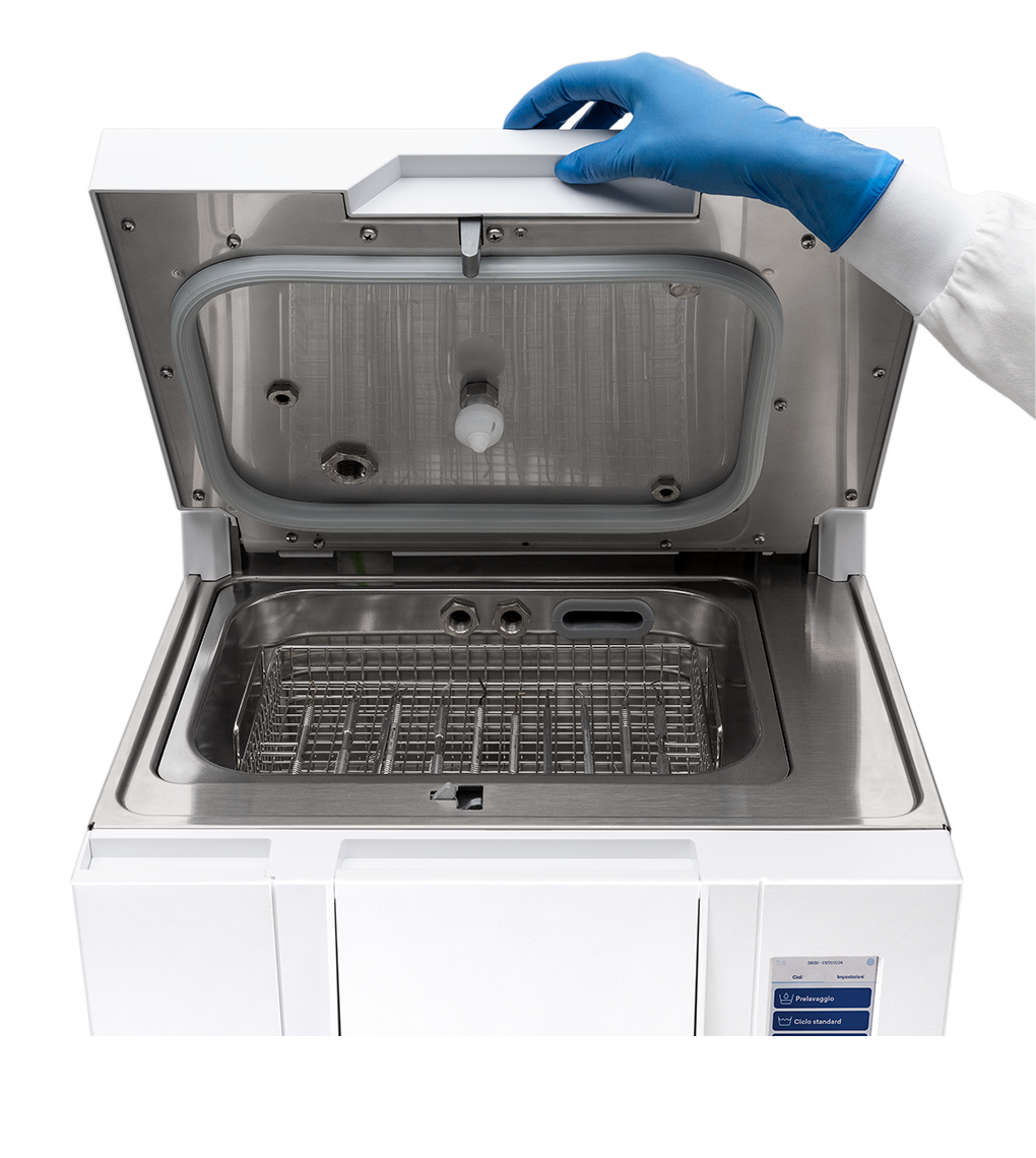 Zahvaljujući spremniku za pranje kapaciteta 10 litara, uređaj može primiti cijeli teret iz autoklava zapremine 24 litre. Opremljen je s dvije police koje omogućuju maksimalno iskorištavanje prostora unutar spremnika.