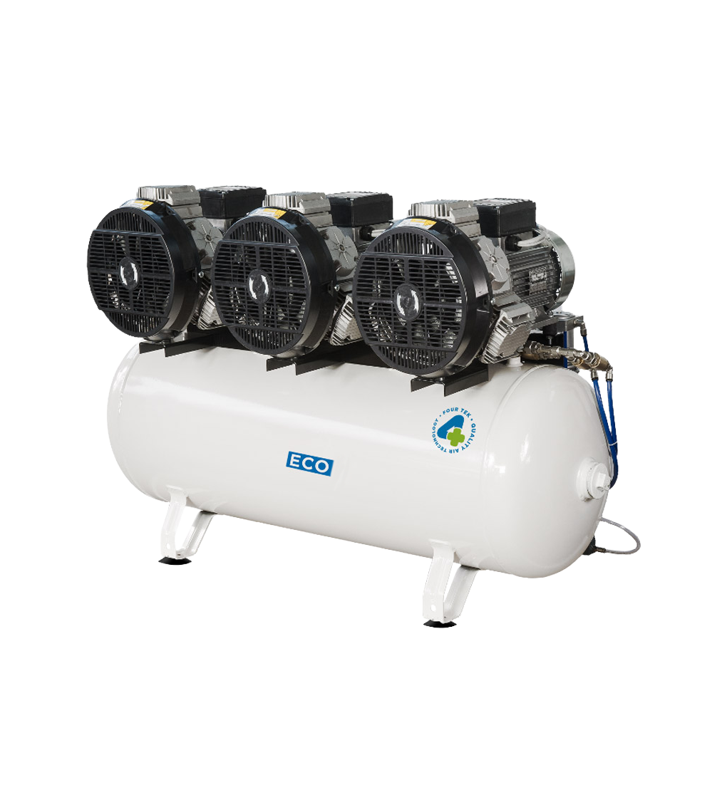 Kompresor bez ulja s 3 glave po 3 cilindra, tradicionalnim klipovima, bez isušivača.