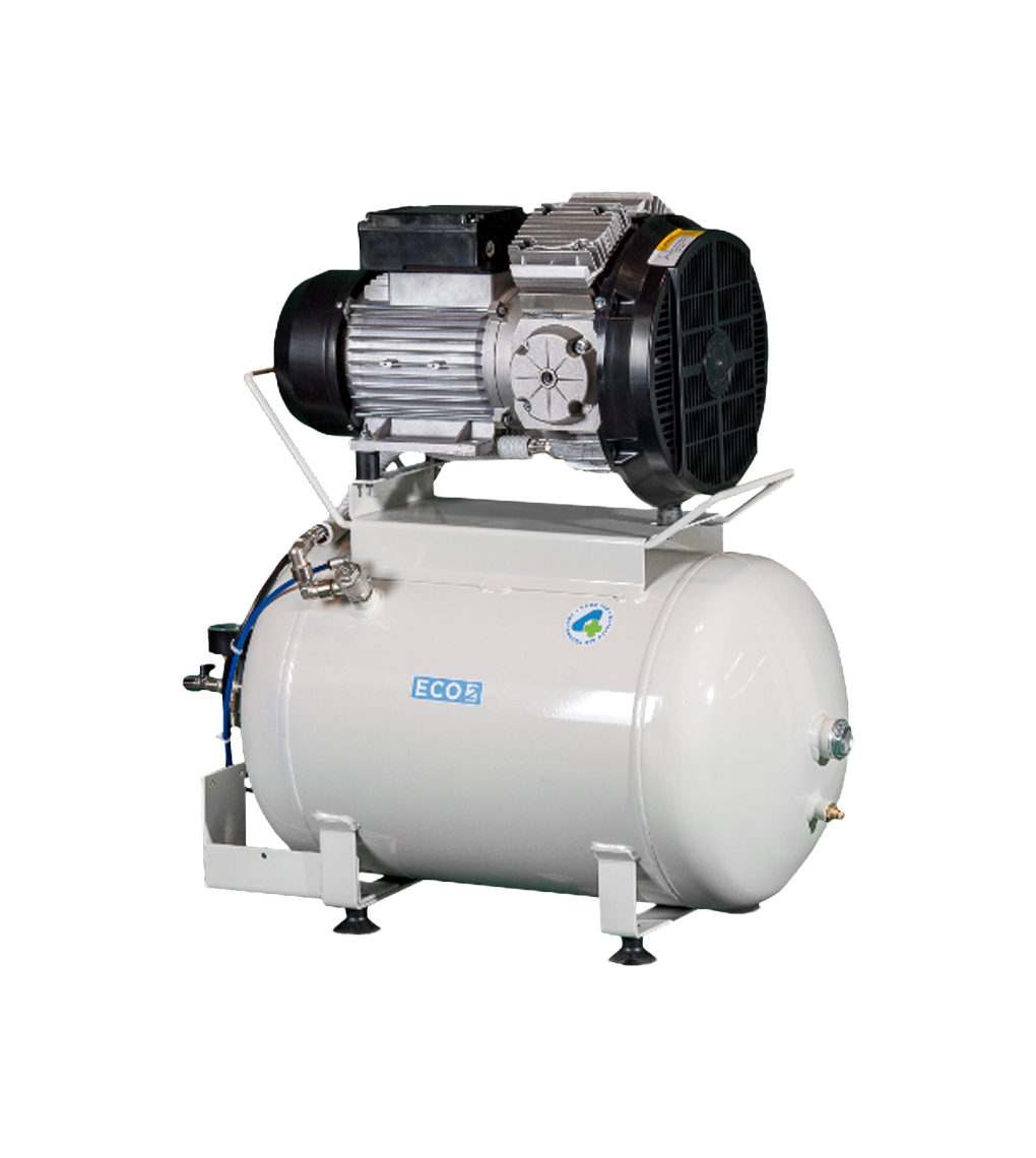 Kompresor bez ulja s tradicionalnim klipovima, 2 cilindra, bez sušilice.