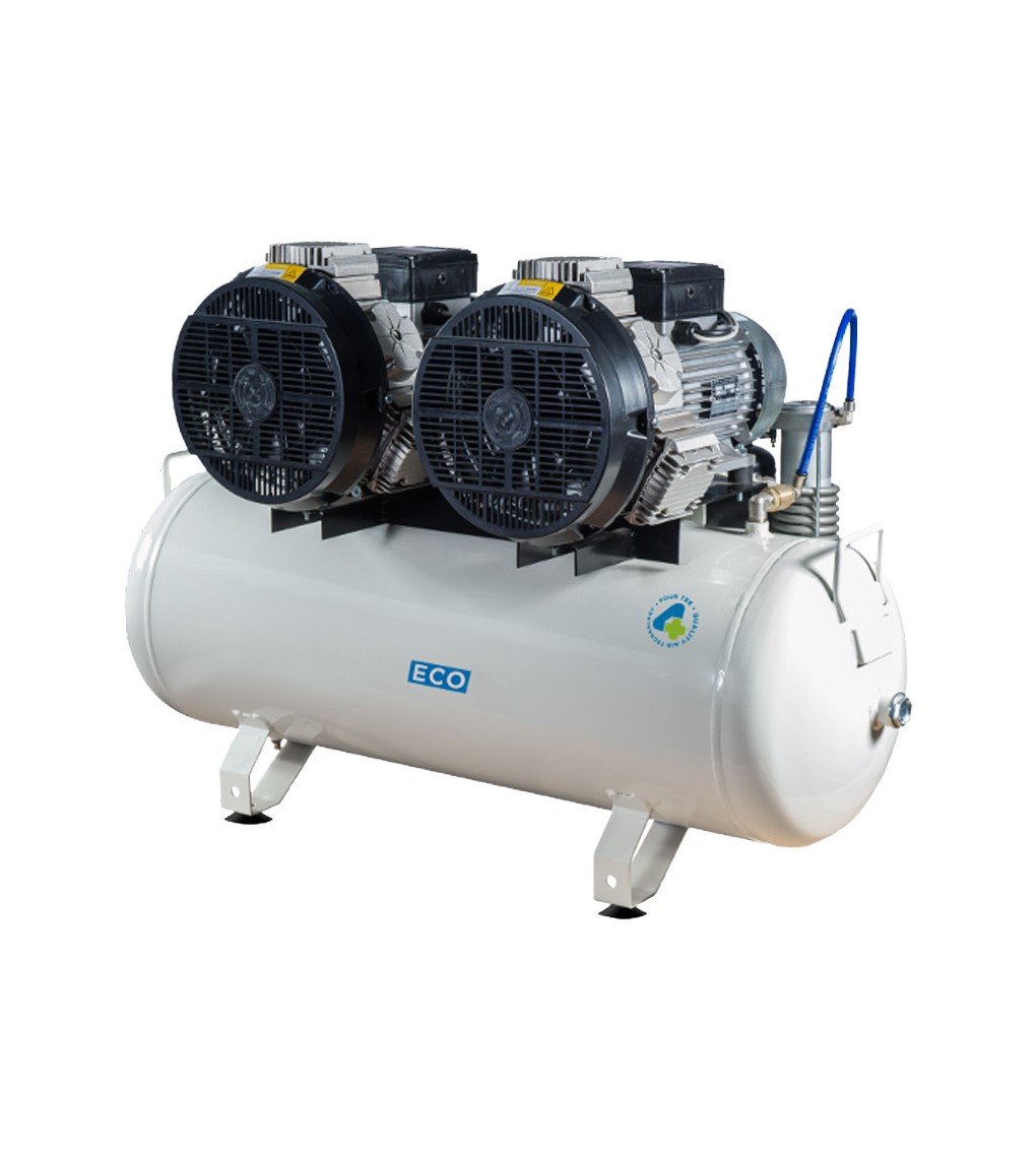 Kompresor bez ulja s 2 glave po 3 cilindra, tradicionalnim klipovima, bez isušivača.