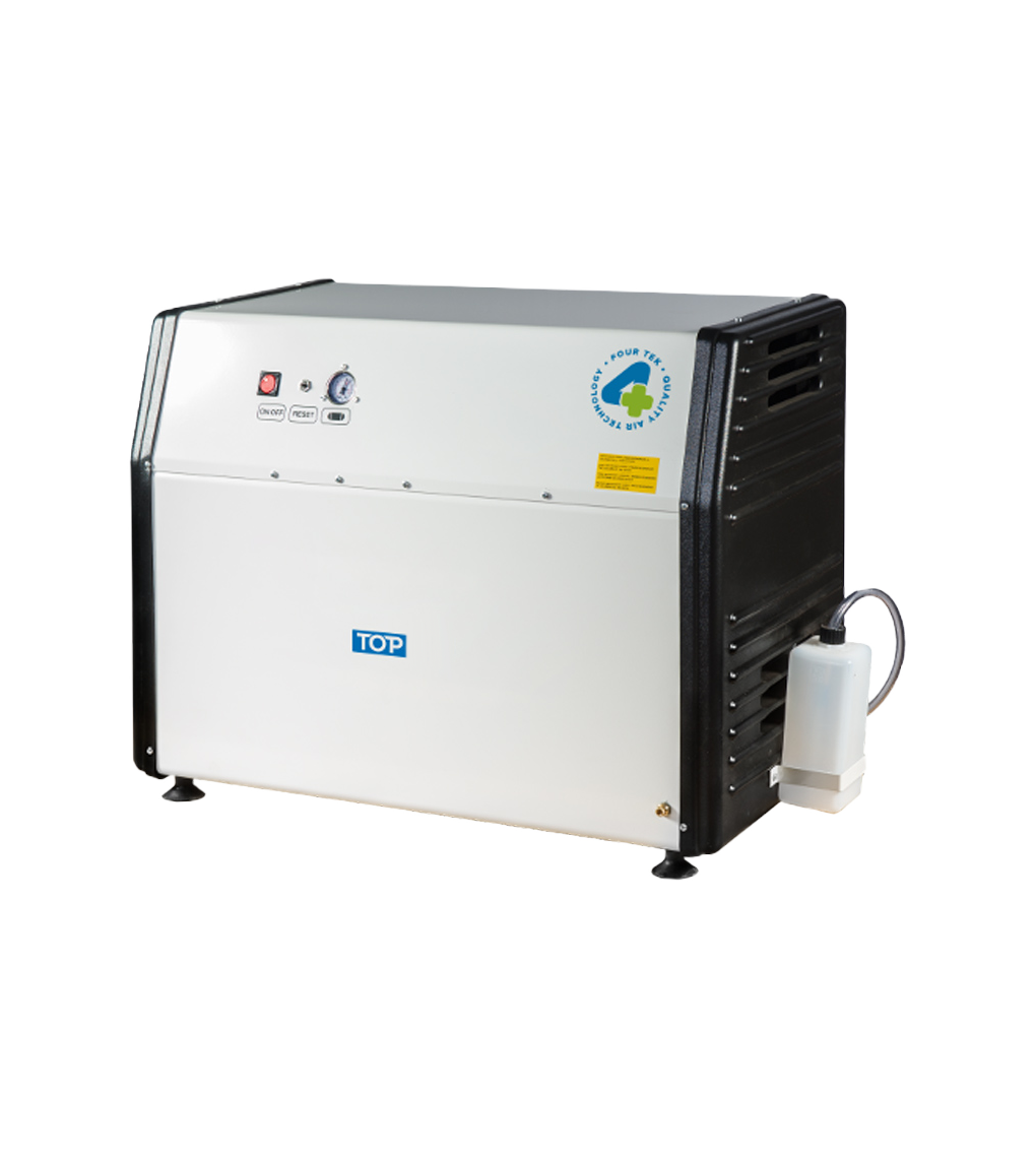 Kompresor bez ulja s plivajućim klipovima, 2 cilindra, metalnim kućištem i sa isušivačem.